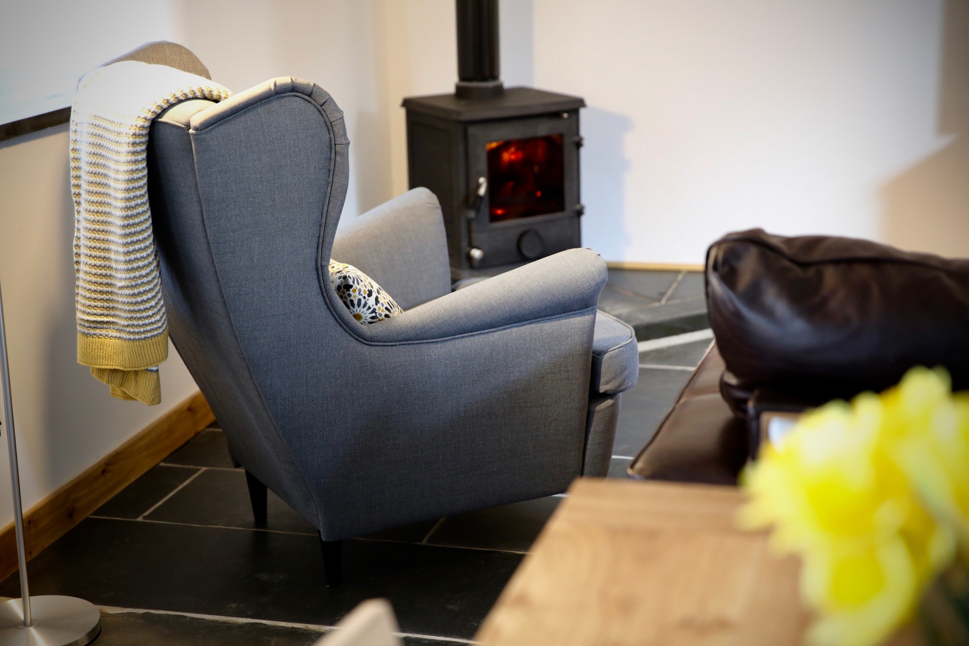 Relax on the large leather sofa to enjoy a blazing log fire in the wood burning stove. There’s also a couple of comfy armchairs surrounding the fire and the flat screen TV – plenty of room for all the family to watch a film or just take in the comfort and warmth of a crackling fire.