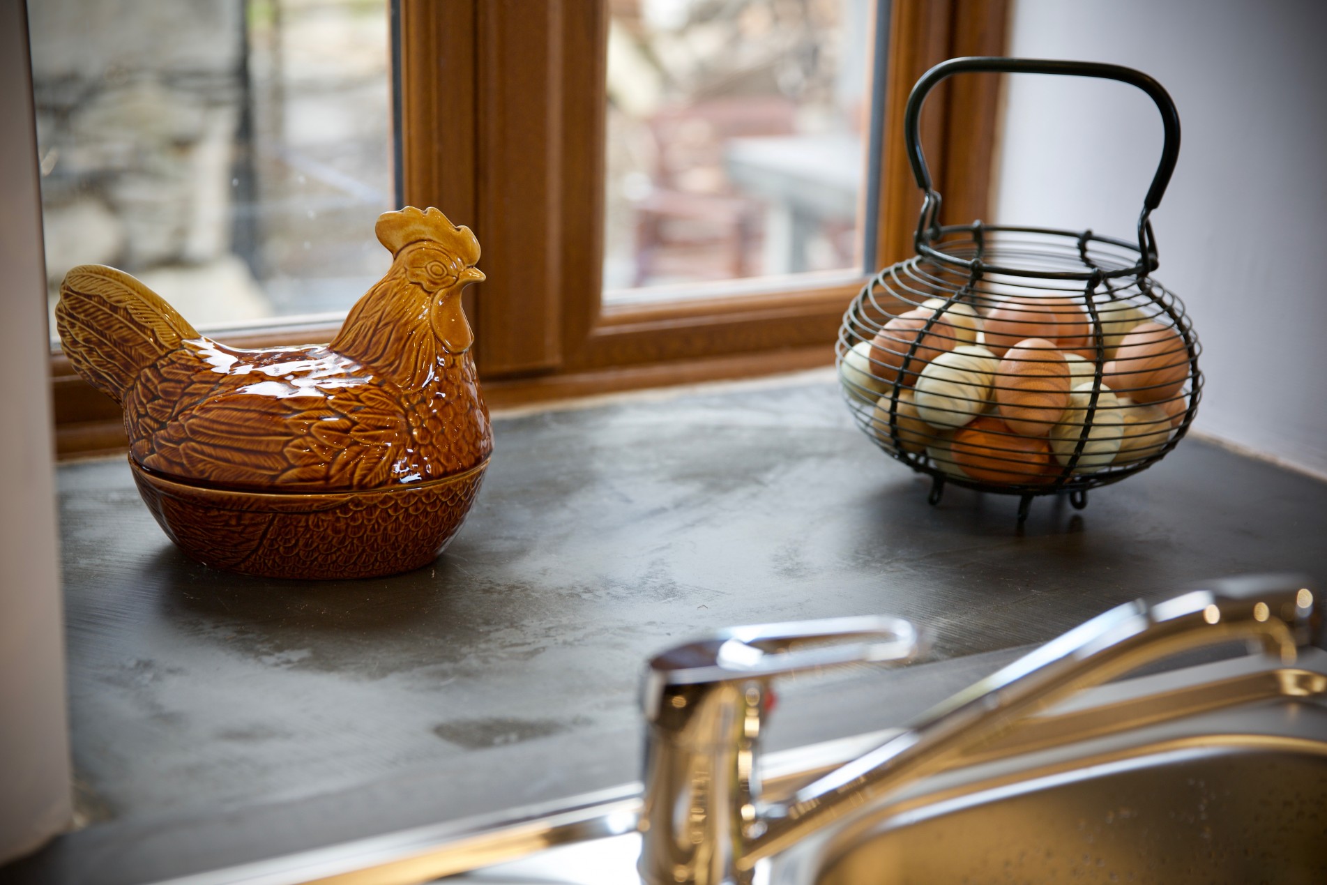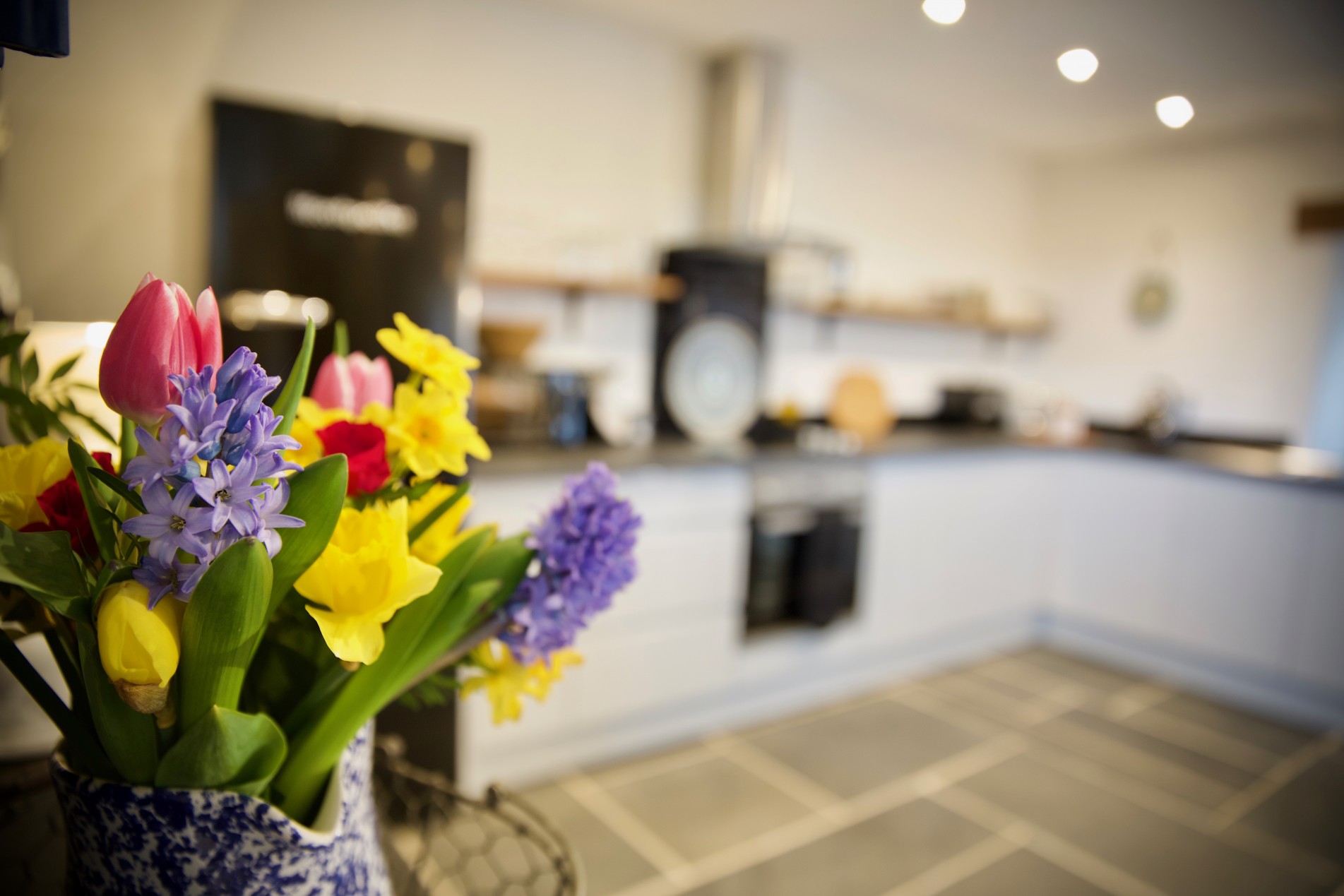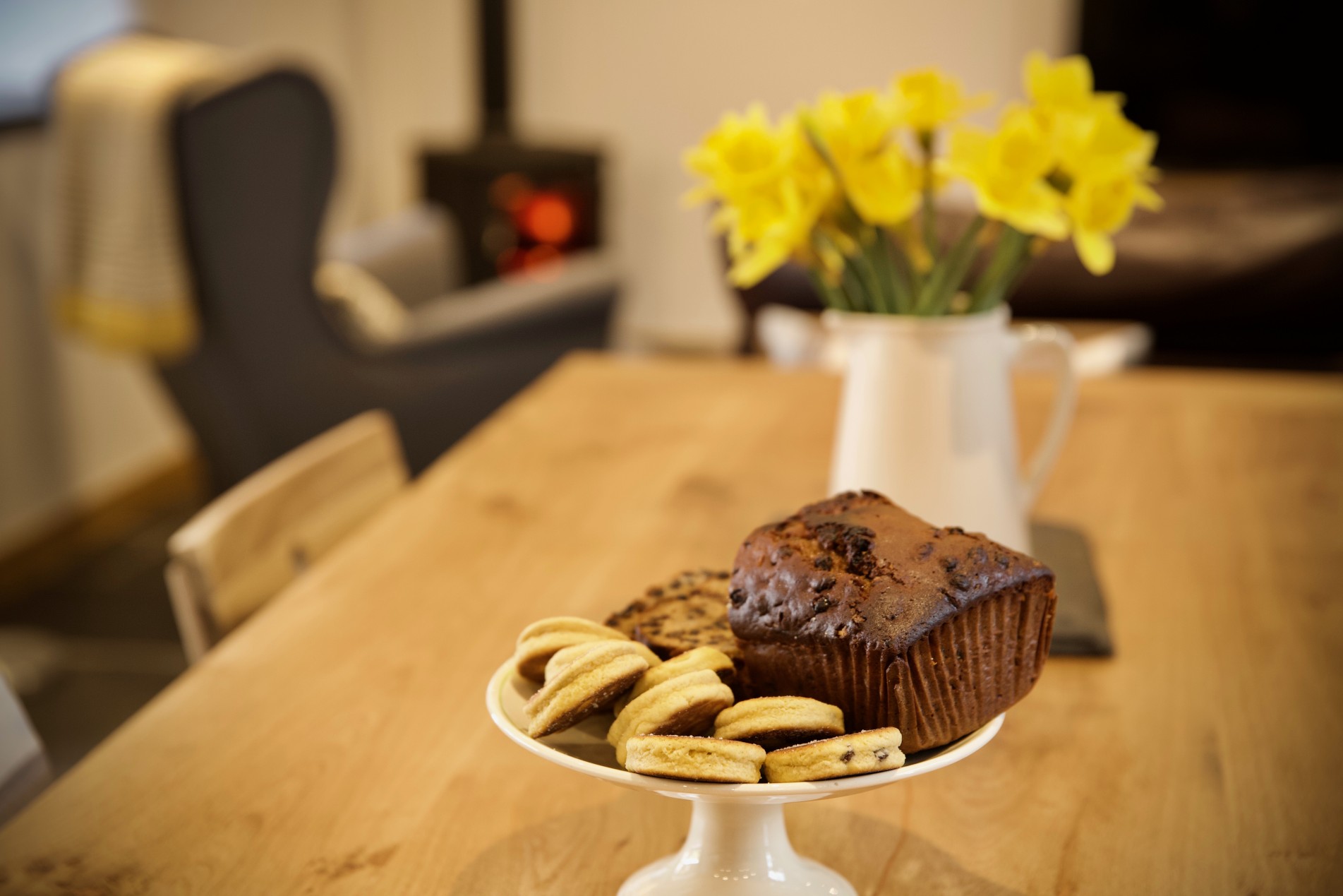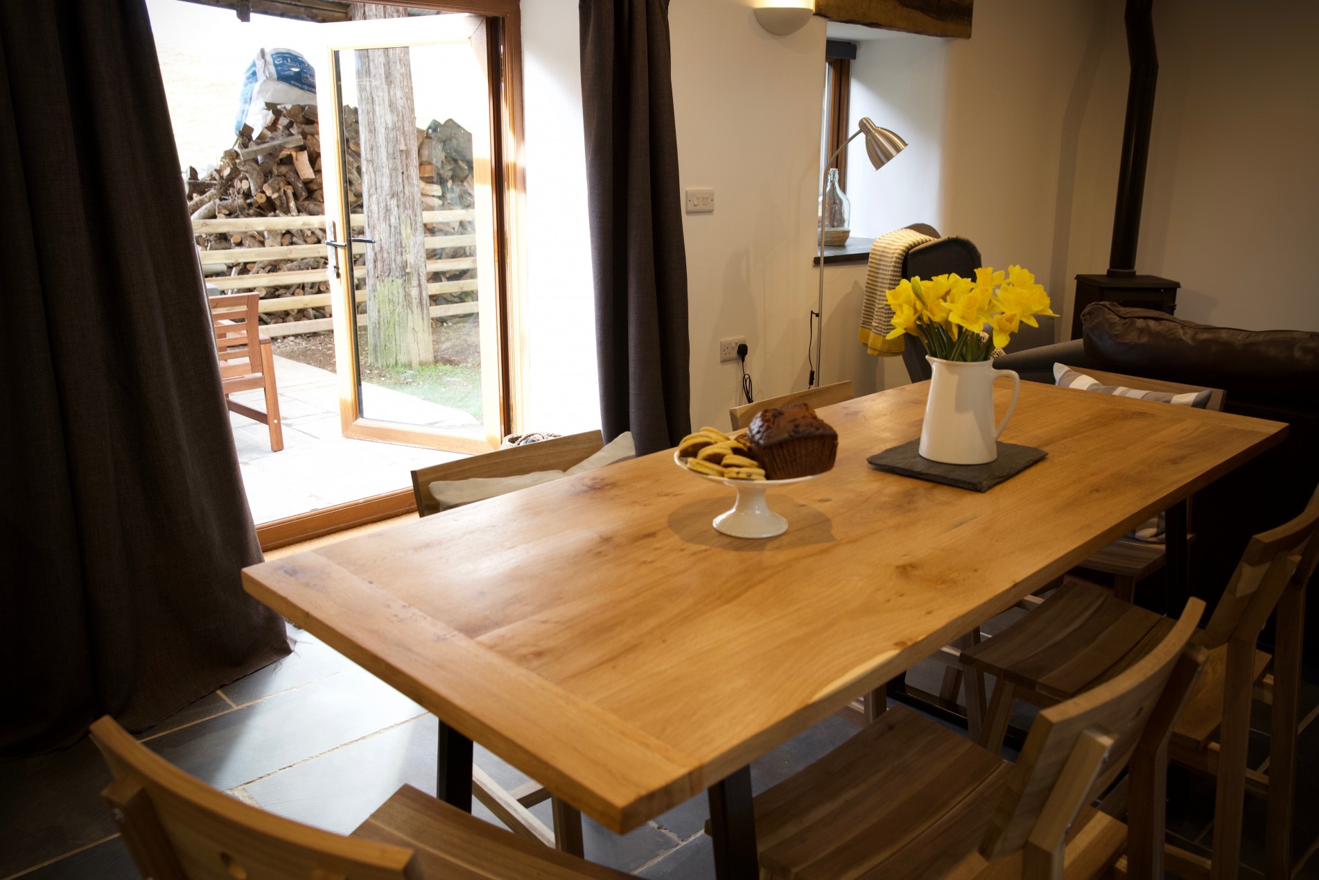 Enjoy cooking delicious meals in this modern, well equipped kitchen. The sociable layout means the rest of the family can keep you company while they sit around the large hand crafted dining table. Throw the patio doors wide open on a sunny morning to enjoy a leisurely brunch, taking in the views of the orchard and the fields beyond. Gather around the oak table for a family get together and enjoy an evening of playing board games – you’ll find a selection hidden away in the farmhouse kitchen dresser.