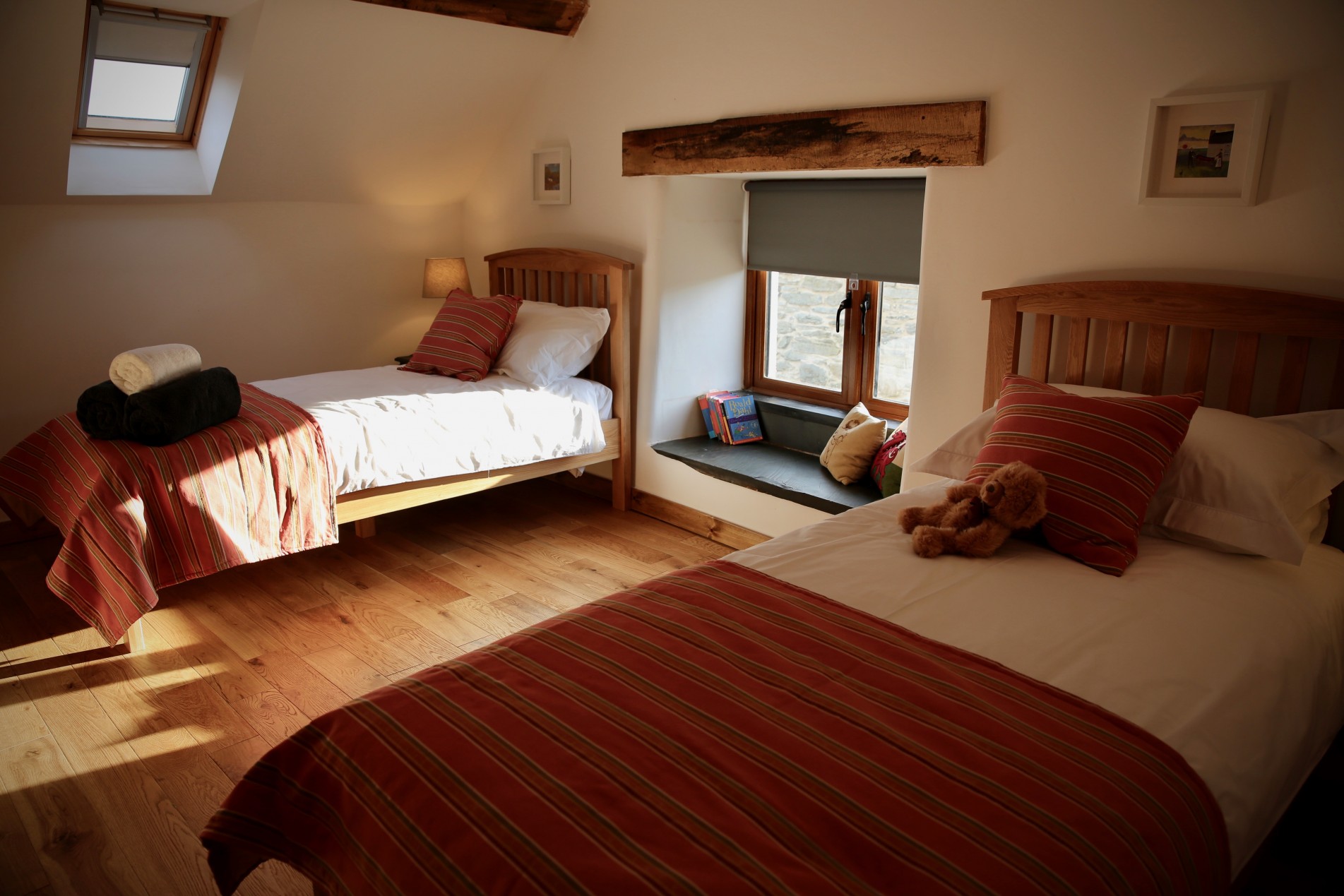 At the end of the day, retire upstairs to sleep in super comfy beds with crisp, white cotton bed linen. Large windows and skylights ensure that the bedrooms are nice and bright on winter mornings. Close the blackout blinds for lazy Summer lye-ins.